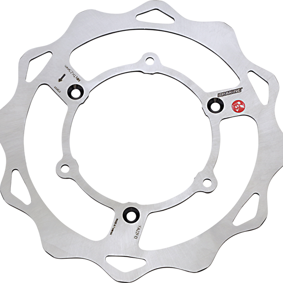 Caracteristicas: Efficient design utilizes all the brake pad's surface evenly and eliminates lightening holes, which adds strength Better heat dissipation Self-cleaning Provide maximum stopping power while remaining perfectly flat Design is covered by an international license Unlike cheaply designed, stamped stock rotors, Braking U.S.A. rotors are made from a super-tough, high-carbon-content stainless steel and laser-cut with a CAD-CAM machine Used by top competitors