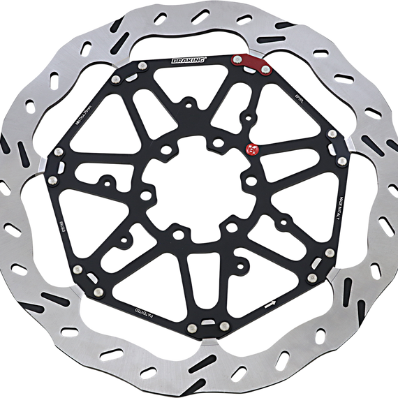 Caracteristicas: Designed with input from Braking's working experience with best teams in most important competitions in the world (SBK and SS) The braking track ensures a better heat dissipation, ensuring a steady friction coefficient The new connection structure allows a more controlled radial axial play, with a better load transfer between the braking track and the carrier Thermal design optimized Maximum weight-to-performance ratio Consistent disc temperature Absence of heat spots Direct load transfer between rotor and hub No pin deformation due to applied load