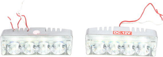 Caracteristicas: Projection lamp uses Hi-Power white LEDs for auxiliary lighting, interior lighting, or driving lights No warm-up, lights are instant on/off Long life, rated to over 50,000 hours Oversized heat-sink Cast aluminum body with stainless steel hardware Standard 2-wire connection to any 12V DC input Wiring harness with lighted switch, fuse, relay and double output wire for two post-mount LED lights sold separately