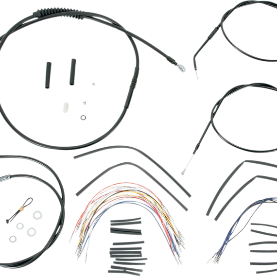 Caracteristicas: Complete installation kit for Burly Ape hangers Kits include extended brake line, extended clutch cable/clutch line, extended throttle/idle cables as required and all necessary wiring Brake lines feature PTFE inner liner and heavy-duty stainless steel outer braid Dresser kits reuse stock Throttle-By-Wire harness Kits are based on using 2" risers with ape hanger-style handlebars