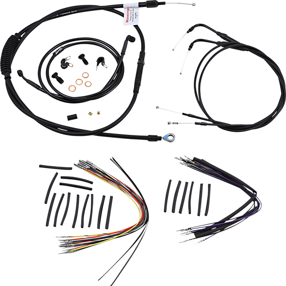 Caracteristicas: Complete installation kit for Burly Ape hangers Kits include extended brake line (unless noted), extended clutch cable/clutch line, extended throttle/idle cables as required and all necessary wiring Brake lines, when included, feature PTFE inner liner and heavy-duty stainless steel outer braid Dresser kits reuse stock Throttle-By-Wire harness Kits are based on using 2" risers with ape hanger-style handlebars