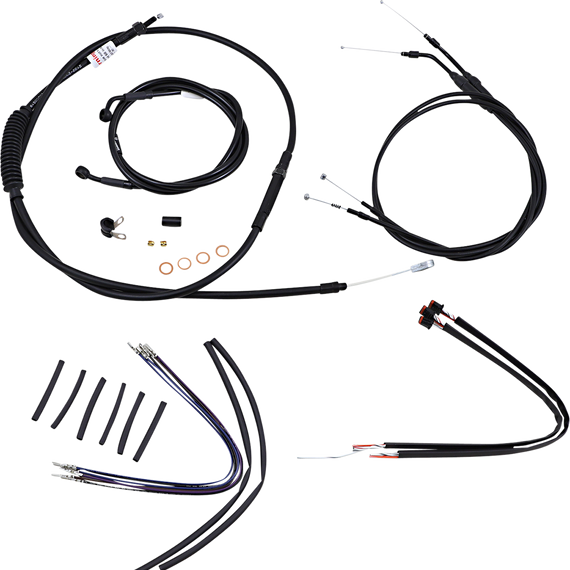 Caracteristicas: Complete installation kit for Burly Ape hangers Kits include extended brake line (unless noted), extended clutch cable/clutch line, extended throttle/idle cables as required and all necessary wiring Brake lines, when included, feature PTFE inner liner and heavy-duty stainless steel outer braid Dresser kits reuse stock Throttle-By-Wire harness Kits are based on using 2" risers with ape hanger-style handlebars