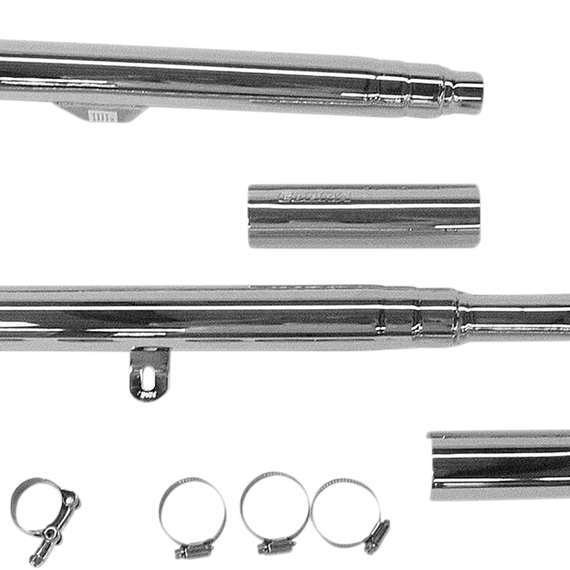 Caracteristicas: Pure drag pipes work great on dragsters because they spend 100 percent of their time at full throttle. In the real world, you need a little added finesse--the Cobra touch Cobra drag pipes have the pure, simple lines riders want, and they come with their removable power cores With the cores in you get a great, sharp bark of an exhaust note that's still appropriate for riding in town And you'll also get a real performance increase you can feel