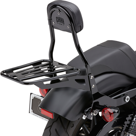 Caracteristicas: A detachable backrest offers the best of both worlds for a rider The docking hardware kit is included, mounting directly to your Harley's fender rails Allows you to easily remove and install the backrest onto your bike in a matter of seconds If you need more storage space, the optional Cobra luggage rack mounts directly to the Cobra backrest Pad measures 6" W x 5" H x 2" D