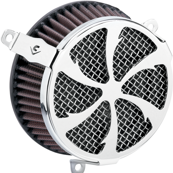 Caracteristicas: The Cobra system consists of a laser-cut, formed steel cover, separate mounting ring, and all the fasteners, seals, backing plate and mounting hardware for easy installation Flow better than stock or competing units, in large part because of its unique internal venturi design of the inner filter High-flow K&N® Air Filter element ensures the maximum air intake and protection Slim profile keeps the unit away from the rider’s leg Formed stainless steel mesh insert Optimize overall performance Made in the U.S.A.