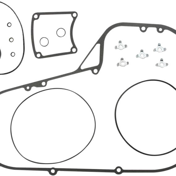 Caracteristicas: Cometic's proprietary AFM (Aluminum Foamette Material) gaskets feature an aluminum core with a chemically blown, compounded nitrile synthetic rubber bonded to the outside Gaskets have resistance to temperatures of more than 2500°F Have an 85% shape-recovering while maintaining strong torque retention - ideal gasket material for machined surfaces Does not require gasket sealer Kits include all gaskets, seals and O-rings required for both the inner and outer primary Made in the U.S.A.