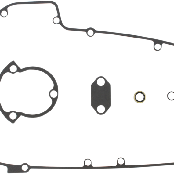 Caracteristicas: Cometic's proprietary AFM (Aluminum Foamette Material) gaskets feature an aluminum core with a chemically blown, compounded nitrile synthetic rubber bonded to the outside Gaskets have resistance to temperatures of more than 2500°F Have an 85% shape-recovering while maintaining strong torque retention - ideal gasket material for machined surfaces Does not require gasket sealer Kits include all gaskets, seals and O-rings required for both the inner and outer primary Made in the U.S.A.