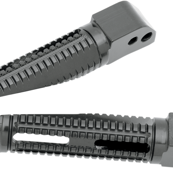 Caracteristicas: CNC-machined from 6061 T-6 billet aluminum; replace stock footpegs Lighter than stock, slash cut for greater ground clearance; have machined, not knurled, grooves for better grip