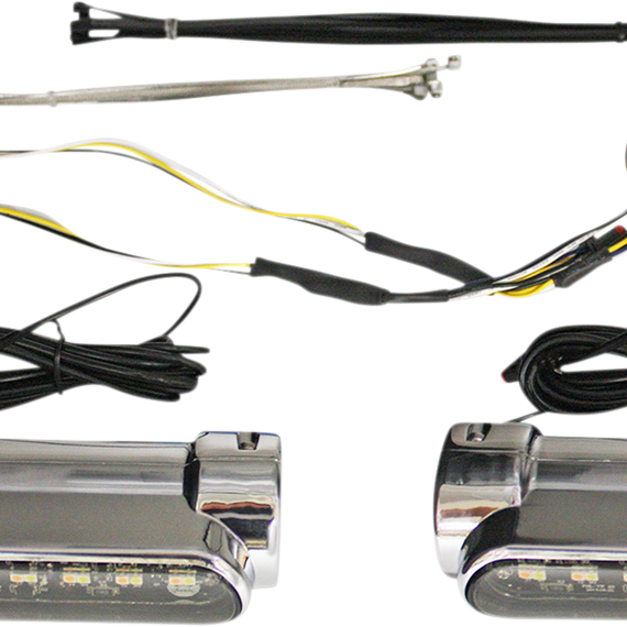 Caracteristicas: Each unit adds 6 bright white running LEDs and 6 amber turn signal LEDs Direct bolt on installation for 1.25” engine guards Includes plug and play wire harness for simple installation Mounting hardware included No drilling required Die-cast aluminum housing