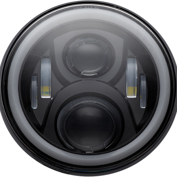 Caracteristicas: Features projection style high and low beam with advanced optical D lenses for a smooth, bright white beam pattern and superior field of vision Headlamp automatically keeps low beam LEDs illuminated when high beam is activated Included mounting ring makes for an effortless installation with H4 connector 6000K color temperature HIGH BEAM: 3620 LM, 3.6 AMPS at 12V LOW BEAM: 2480 LM, 1.8 AMPS at 12V DOT/SAE compliant