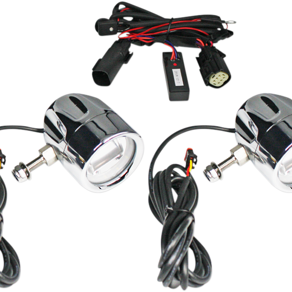 Caracteristicas: Utilize Cree LEDs to produce a superior beam pattern with a super-bright white LED halo Easily mount to engine guards with ProBEAM® Tube clamps (PART #s 2040-2345 and 2040-2346, sold separately Short circuit and thermal overload protection Plug-and-play wire harness 20 watts, 430 lumens Measure 3.2” L x 2.36” D