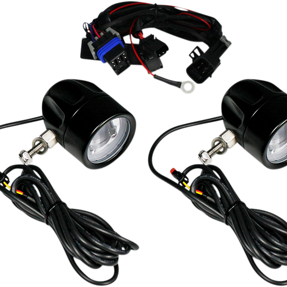 Caracteristicas: Utilize Cree LEDs to produce a superior beam pattern with a super-bright white LED halo Easily mount to engine guards with ProBEAM® Tube clamps (PART #s 2040-2345 and 2040-2346, sold separately Short circuit and thermal overload protection Plug-and-play wire harness 20 watts, 430 lumens Measure 3.2” L x 2.36” D