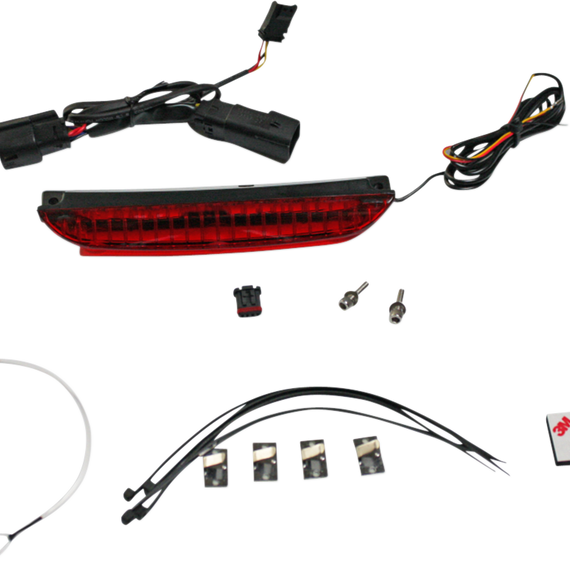 Caracteristicas: This quick addition to the luggage rack adds an additional running and brake light that demands attention! Dual-intensity super bright 5mm LEDs are sealed behind a red or smoked lens The unit is installed with provided mounting hardware to the underside of the luggage rack placing this light bar right at eye level to the traffic behind you Plug and play with provided mounting hardware