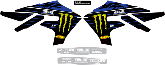 Caracteristicas: Great way to refresh your complete kit without having to buy a new a whole new kit Includes decals for radiator shrouds, tank and swingarm