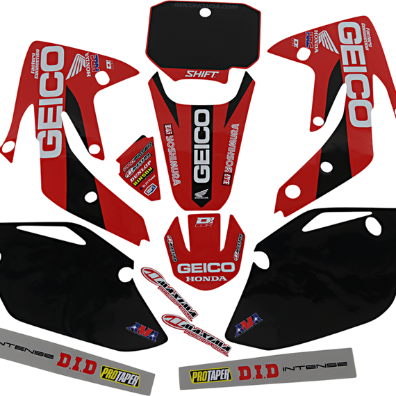 Caracteristicas: Includes decals for radiator shrouds, tank, number plate, airbox, lower fork guards, front fender, rear fender and swingarm