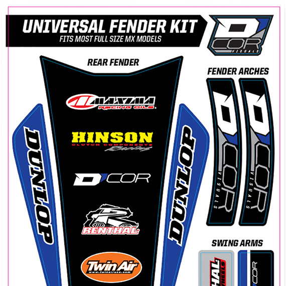 Caracteristicas: Fits most MX full size models Includes graphics for front fender, rear fender, fender arches and swingarm 15 mil decal thickness