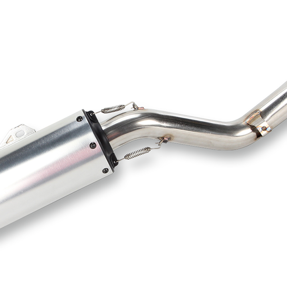 Caracteristicas: Features lightweight stainless steel and aluminum construction Designed to increase horsepower and torque Bolts directly to the stock headpipe USFS spark arrestor Optional quiet core inserts available separately
