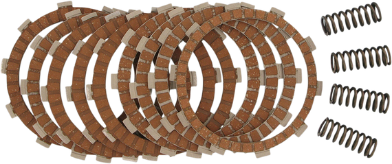 Caracteristicas: Get all the performance without all the fade or slip Friction plates are ready to fit - no need to pre-soak in oil Designed to ensure ultra-smooth power delivery More durable than OEM clutch plates High-heat friction material for fade-free performance Clutch springs are shot-peened for maximum life, heat-treated and precision-wound using only the finest chrome silicon Springs are individually designed for each application to ensure easy operation and great feel at the lever Steel friction plates are precision-made using exacting tolerances Plates are heat-treated for maximum life Will not muddy or contaminate oil