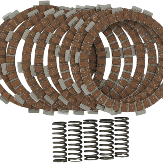 Caracteristicas: Get all the performance without all the fade or slip Friction plates are ready to fit - no need to pre-soak in oil Designed to ensure ultra-smooth power delivery More durable than OEM clutch plates High-heat friction material for fade-free performance Clutch springs are shot-peened for maximum life, heat-treated and precision-wound using only the finest chrome silicon Springs are individually designed for each application to ensure easy operation and great feel at the lever Steel friction plates are precision-made using exacting tolerances Plates are heat-treated for maximum life Will not muddy or contaminate oil