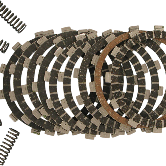 Caracteristicas: Get all the performance without all the fade or slip Friction plates are ready to fit - no need to pre-soak in oil Designed to ensure ultra-smooth power delivery More durable than OEM clutch plates High-heat friction material for fade-free performance Clutch springs are shot-peened for maximum life, heat-treated and precision-wound using only the finest chrome silicon Springs are individually designed for each application to ensure easy operation and great feel at the lever Steel friction plates are precision-made using exacting tolerances Plates are heat-treated for maximum life Will not muddy or contaminate oil