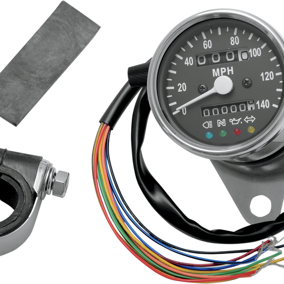 2.4" MPH Mini Mechanical Speedometer with LED Indicators - Black Face - 2:1 Ratio