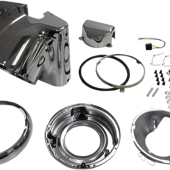Caracteristicas: Two-piece die-cast aluminum housing Re-creates the nostalgic look of the 1960s FL models Handlebar clamp cover, headlight mount, trim ring and all other necessary parts and hardware included for a complete installation Headlight sold separately