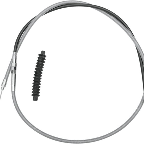 Caracteristicas: Low effort, maximum efficiency cable design meets or exceeds all OEM specifications for fitment, construction and endurance requirements Cables feature chrome-plated fittings, stainless-steel braided outer casings, tempered-steel inner wire and a nylon inner sleeve for smooth operation Braiding is coated with a non-yellowing clear coating for abrasion resistance High-performance cables use the latest technology of longitudinally winding the outer housing lengthwise rather than spirally so cable bends in a more natural arc and eliminates spring and compression Late-style cables are measured with the adjuster completely collapsed Adjuster measured from bottom of cable