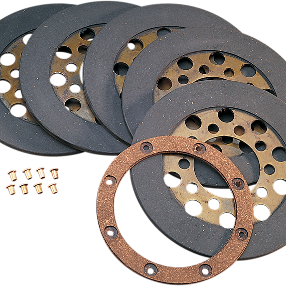 Caracteristicas: Runs wet or dry; meets or exceeds all OEM specs Contains (5) friction plates and (1) hub liner with rivets