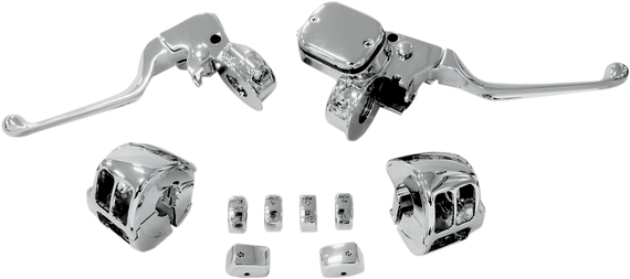 • Kits include master cylinder assembly, clutch lever assembly, die-cast switch housings with radiused edges and OEM-style clamps