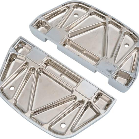 Caracteristicas: Traditional D-shaped floorboards feature forged aluminum construction with a chrome finish Floorboards and inserts are sold in pairs and must be purchased separately Models with passenger footpegs require the use of PART #s 1621-0392, 1621-0393, 1621-0394 or 1621-0395 accessory passenger floorboard mounts (sold separately).