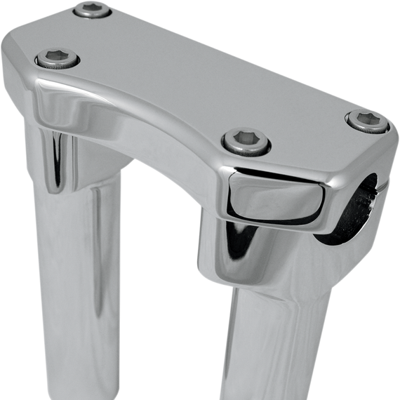 Caracteristicas: Sold as a kit of two risers, one-piece top clamp and all necessary hardware Available for handlebars that have a 1" or 1-1/2" diameter clamping area Tapped for 1/2"-13 bolts Made in the U.S.A.