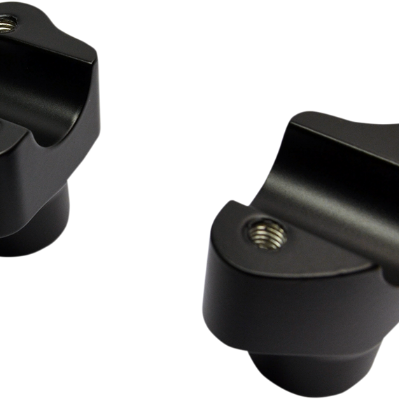Caracteristicas: Risers are machined from billet aluminum Fit any handlebars that have a 1" diameter in the clamping area, and have 1-1/4" riser diameter to compliment the style of 1-1/4" diameter handlebars Accepts Buffalo handlebar clamps or OEM-style handlebar clamps with offset mounting holes Pullback risers have 1" of pullback All risers use 1/2"-13 riser bolts; available separately Made in the U.S.A.