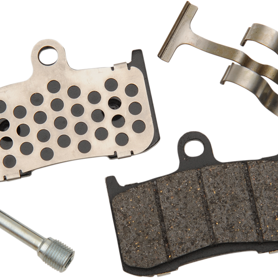Caracteristicas: Sintered metal brake pads are the OEM-type replacement pads for most bikes from the late 1970s to the present Sintered metal brake pads are proudly made in the U.S.A.; second-to-none in their stopping abilities and wear characteristics, while still providing excellent reduction in noise and dust Organic pads are OEM type replacement brake pads for 1970s and earlier models Organic pads with Aramid high-performance fibers are the perfect choice for polished or chromed rotors and billet steel rotors Both compounds of Drag Specialties brake pads are asbestos-, nickel- and lead-free Pads are 8 mm thick. If you are using aftermarket billet steel rotors, it is recommended you use our Organic pads with Aramid high-performance fiber brake pads to avoid damage to them. Sintered pads are not recommended for billet steel rotors as the pad material is too aggressive for those rotors.