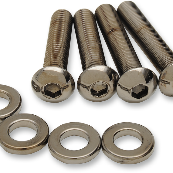 Caracteristicas: Specifically designed for Drag Specialties Premium Adjustable Shocks and Premium™ 10.5" shocks on 04-18 XL applications only Use to ease installation and dress up the mounting points when installing these shocks Kits include, 4 spacers .504" ID x 1.00" OD x .18" thick, 2 screws 1/2"-13 x 2-1/2" Torx™ button head, and 2 screws 1/2"-20 x 2-3/4" Torx™ button head Made in the U.S.A.