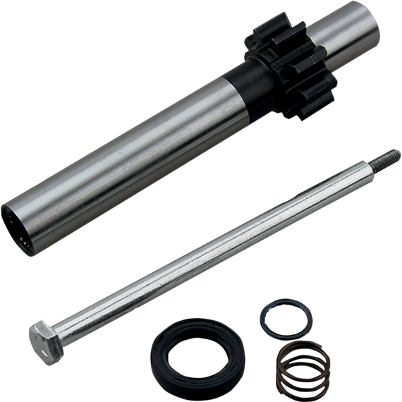 Caracteristicas: One-piece design jackshaft assembly delivers more torque to the primary and is more tolerant of misalignment problems, all for less money than stock jackshaft assemblies Replaces the existing shaft, couplings and pinion gear Includes jackshaft, one 10-32 starter shaft bolt, spring, washer and snap ring