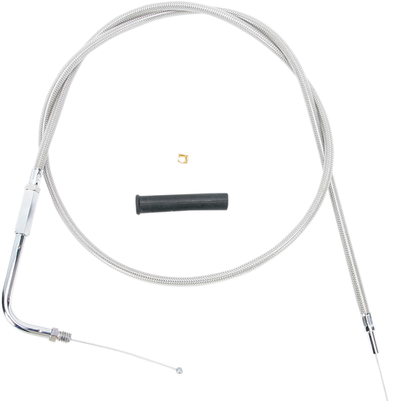 Caracteristicas: Cables feature polished-chrome fittings and stainless-steel braiding outer casings, tempered-steel inner conduit and an inner nylon liner for smooth operation and long life Braided cables feature outer housings coated with a non-yellowing clear covering for abrasion resistance Length given is the length of the outer housing only, excluding the elbow Cables will also fit late style Mikuni carbs
