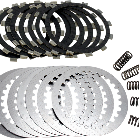 Caracteristicas: Heavy-duty clutch kit designed for hard use and race applications Features carbon-fiber lined clutch friction plates, a full set of steel plates and heavy-duty clutch springs Ideal for use in 4-stroke, high-torque engine applications; great upgrade for 2-stroke performance applications