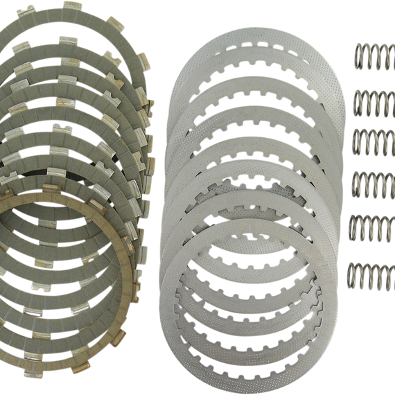 Caracteristicas: Include aramid fiber-lined friction plates, steel separator plates and springs Designed to withstand the rigors of hard street and racetrack use