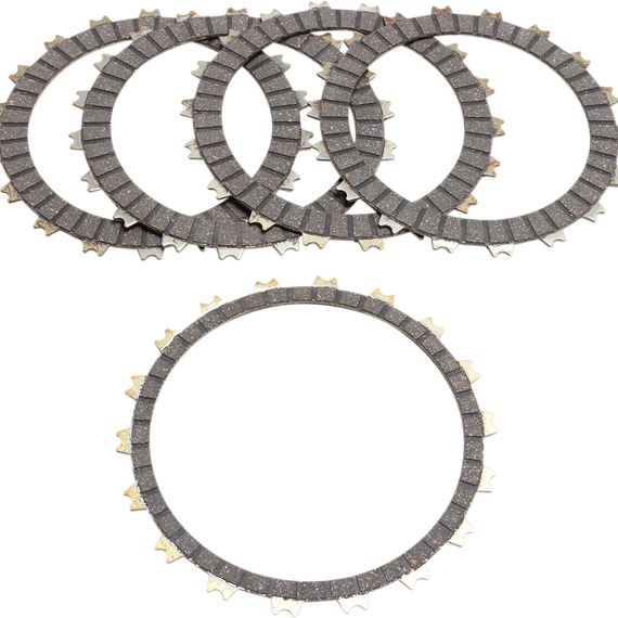 Caracteristicas: Cork-based clutch material impregnated with aluminum particles to increase wear life and heat resistance Highly compressed construction avoids swell and clutch drag Ideal for general-purpose street/sport/touring bikes Kit includes complete engine set of friction plates only See your owners manual on oil type and install instructions to avoid clutch burn up or slippage