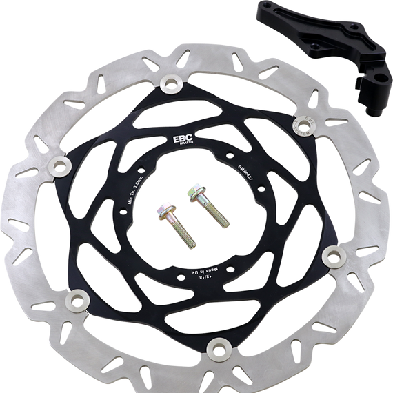 Caracteristicas: Oversize rotor kits give your SuperMoto bike the competitive edge Rotor material has higher friction than plain stainless steel for added stopping power Rotors measure 320 mm Come with caliper relocation bracket Designed to fit standard hubs