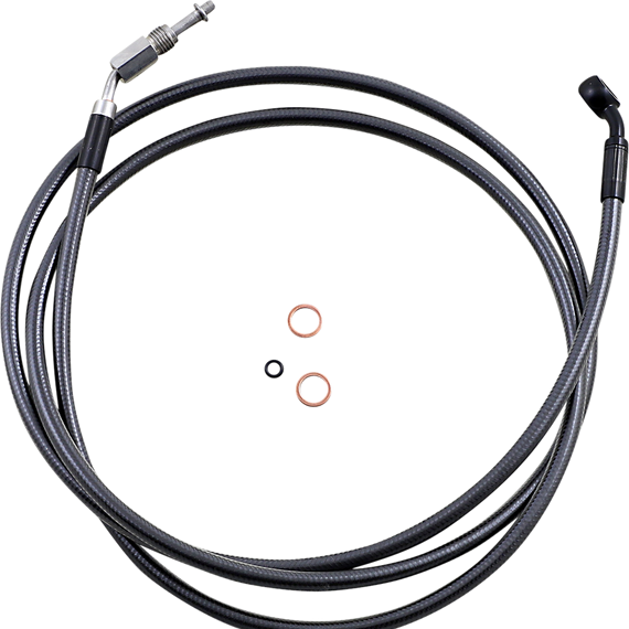 Caracteristicas: Allows brake calipers to be moved to different mounting locations, including radial brake caliper relocations Caliper lines are extended and incorporate EZ-Align banjos for easy installation Plus 2 or plus 4-inch length stock style, two-line configurations Left side dual to single disc conversions in stock, plus 2 or plus 4-inch lengths CNC precision bent tubes for a factory fit Aramid Fiber reinforcement greatly reduces line expansion for the ultimate in high performance Matching upper brake lines, hydraulic clutch lines and clutch cables are available to compliment the lower brake lines Highly polished fittings are chrome or black chrome plated Compliant with all DOT FMVSS-106 specifications Assembled in the USA Magnum Shielding brake lines are designed to follow the same routing path as OEM lines Harley-Davidson motorcycles equipped with ABS (anti-lock brake system) require ABS specific upper and lower brake line kits. Failure to do so may result in compromised anti-lock braking ability. Magnum Shielding brake line kits manufactured specifically for these applications are identified with the letters “ABS” printed directly on the brake hose