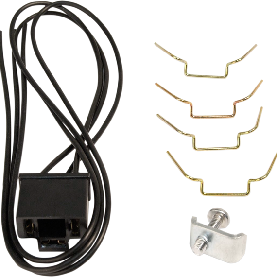 • Includes (4) W retainer clips, (1) screw and (1) rim retainer clamp, (1) 3 prong headlight connector with wiring pigtail