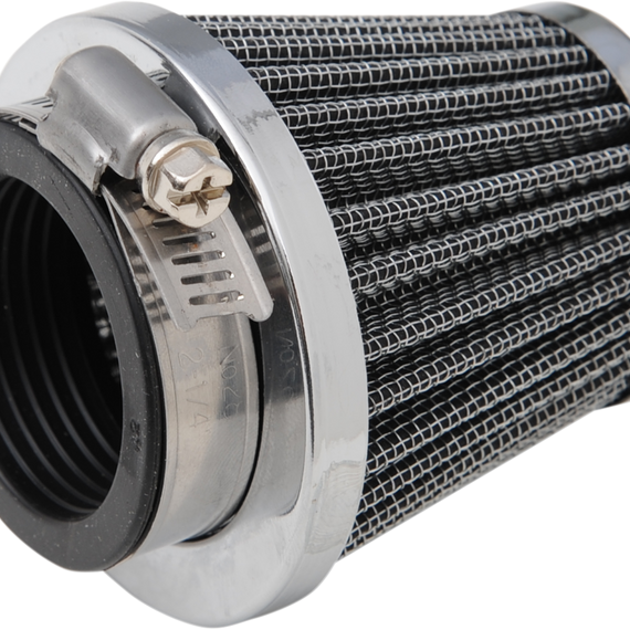 Caracteristicas: Use included stainless steel clamp for secure attachment Quality high-flow paper elements with chrome end caps Width is the largest diameter of filter media Check carb inlet outer diameter before ordering