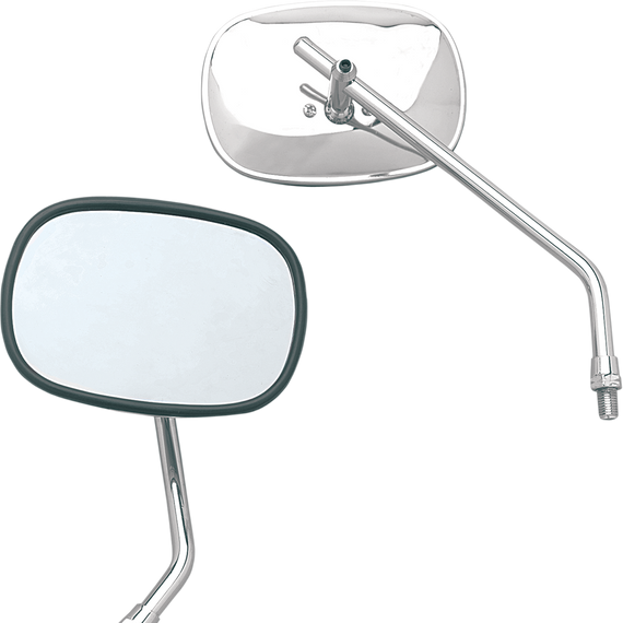Caracteristicas: Stamped or die-cast steel with chrome finish Mirror is fully adjustable 10mm mounting Left handed threads are for some Yamaha right side mirror applications.
