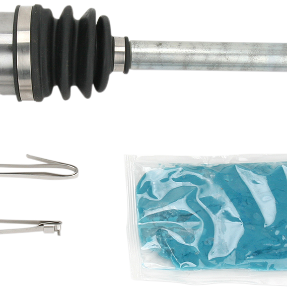Caracteristicas: High-quality OEM replacement shaft; assembled and ready to install using existing inboard joint Complete wheel shaft kit includes complete axle (outboard joint, inboard joint, or inboard u-joint, boots clamps and grease) Half wheel shaft kit includes outboard joint, shaft, inboard boot clamps and grease Made in the U.S.A.