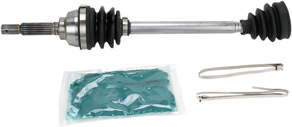 Caracteristicas: High-quality OEM replacement shaft; assembled and ready to install using existing inboard joint Complete wheel shaft kit includes complete axle (outboard joint, inboard joint, or inboard u-joint, boots clamps and grease) Half wheel shaft kit includes outboard joint, shaft, inboard boot clamps and grease Made in the U.S.A.