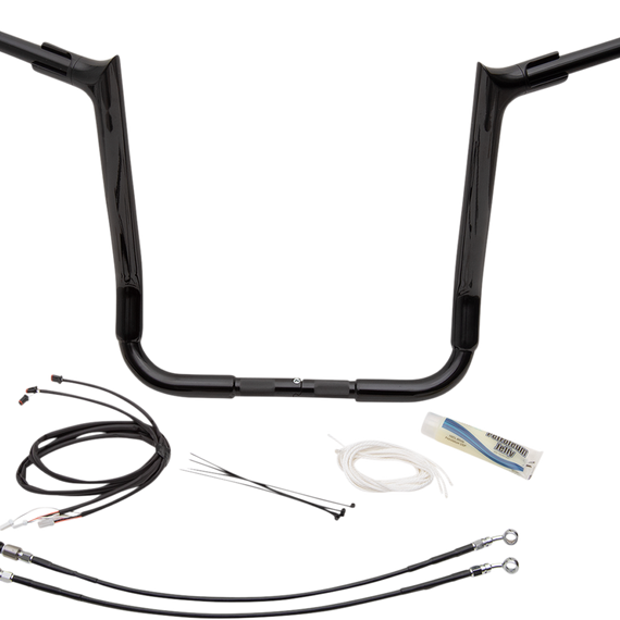 Caracteristicas: Adjustable 1-½” collar next to handlebar controls for custom look Revolutionary bolt-together two-piece handlebar design that takes up half the shelf space, is easy to ship and even faster to install CNC mandrel-bent from 1-1/2" diameter x .095" wall heavy tube EZ install means no more need to fight internal wiring; install handlebar wiring in minutes Billet machined top with a large internal machined radius allows for EZ pulling of wiring (non-welded top corner) Install kits include everything needed to install the handlebars in half the time of other kits due to our design that only extends the existing clutch cable/ clutch line and brake lines Handlebars are knurled and notched for TBW applications Made in the U.S.A. Accepts OEM heated grips Patent No. 10,946,926