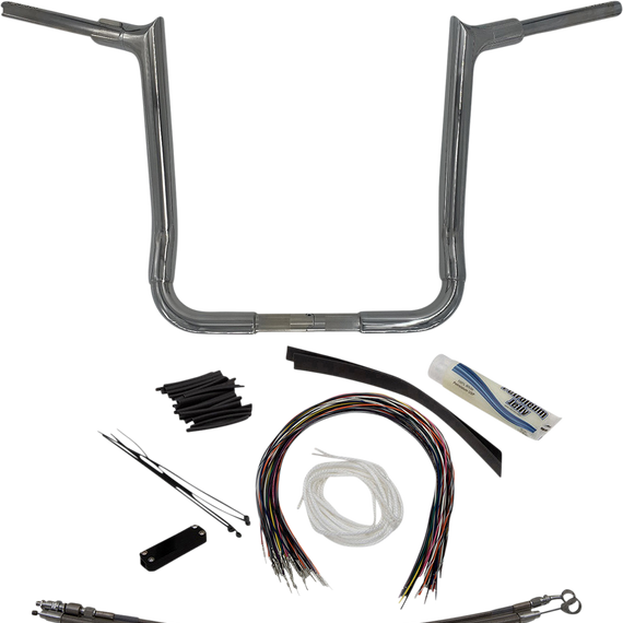 Caracteristicas: Adjustable 1-½” collar next to handlebar controls for custom look Revolutionary bolt-together two-piece handlebar design that takes up half the shelf space, is easy to ship and even faster to install CNC mandrel-bent from 1-1/2" diameter x .095" wall heavy tube EZ install means no more need to fight internal wiring; install handlebar wiring in minutes Billet machined top with a large internal machined radius allows for EZ pulling of wiring (non-welded top corner) Install kits include everything needed to install the handlebars in half the time of other kits due to our design that only extends the existing clutch cable/ clutch line and brake lines Handlebars are knurled and notched for TBW applications Made in the U.S.A. Accepts OEM heated grips Patent No. 10,946,926