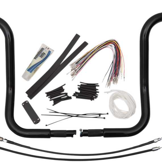 Caracteristicas: EZ Install means no more need to fight internal wiring; you can install wiring in minutes Kits include only the necessary components needed to install handlebars based on the model and height of handlebar Will include a brake line extension, clutch line/cable extension and wiring harness when needed CNC mandrel-bent from 1-1/4" diameter x .120" wall heavy tube Bolt together, two-piece handlebar that takes up half the shelf space and is easy to ship Made in the U.S.A. These handlebar kits do not replace existing lines, but they extend them Patent No. 10,946,926