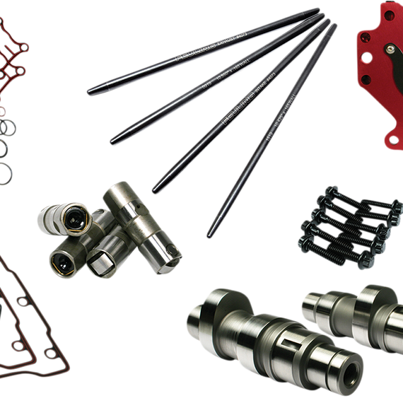Caracteristicas: All necessary components from top-to-bottom of the camchest Provide maximum reliability, longevity, peak performance, and the coolest engine and oil temperatures obtainable Quieter and smoother engine operation Increase oil pressure, scavenge volume and engine oil flow 25-35 degree cooler engine temperatures 15-30 degree cooler oil temperatures 15-30 more PSI of oil pressure Eliminate wet sumping, blow by and oily air cleaners Heavy-duty Fast Install adjustable pushrods can be installed without removing top rocker covers Includes Feuling® HP+® high-volume oil pump, high-flow billet cam plate, REAPER® Series camshafts, HP+® hydraulic roller lifters, Fast Install® adjustable pushrods, Timken®/Koyo® bearings, gaskets, O-rings, hardware, ARP® fasteners, washers, moly lube and Loctite® Conversion chain drive kits update early mechanical-style tensioner systems to the new late-style hydraulic tensioner chain drive system; these kits utilize conversion Reaper® camshafts which have '99-'06 inner-cam journals matched with '07-'17 outer-cam journals, allowing the use of the '07-'17 cam plate and hydraulic chain drive tensioner system; hydraulic chain drive components purchased separately Installation of gear drive cams will require separate purchase of S&S or Andrews 4-gear drive kit